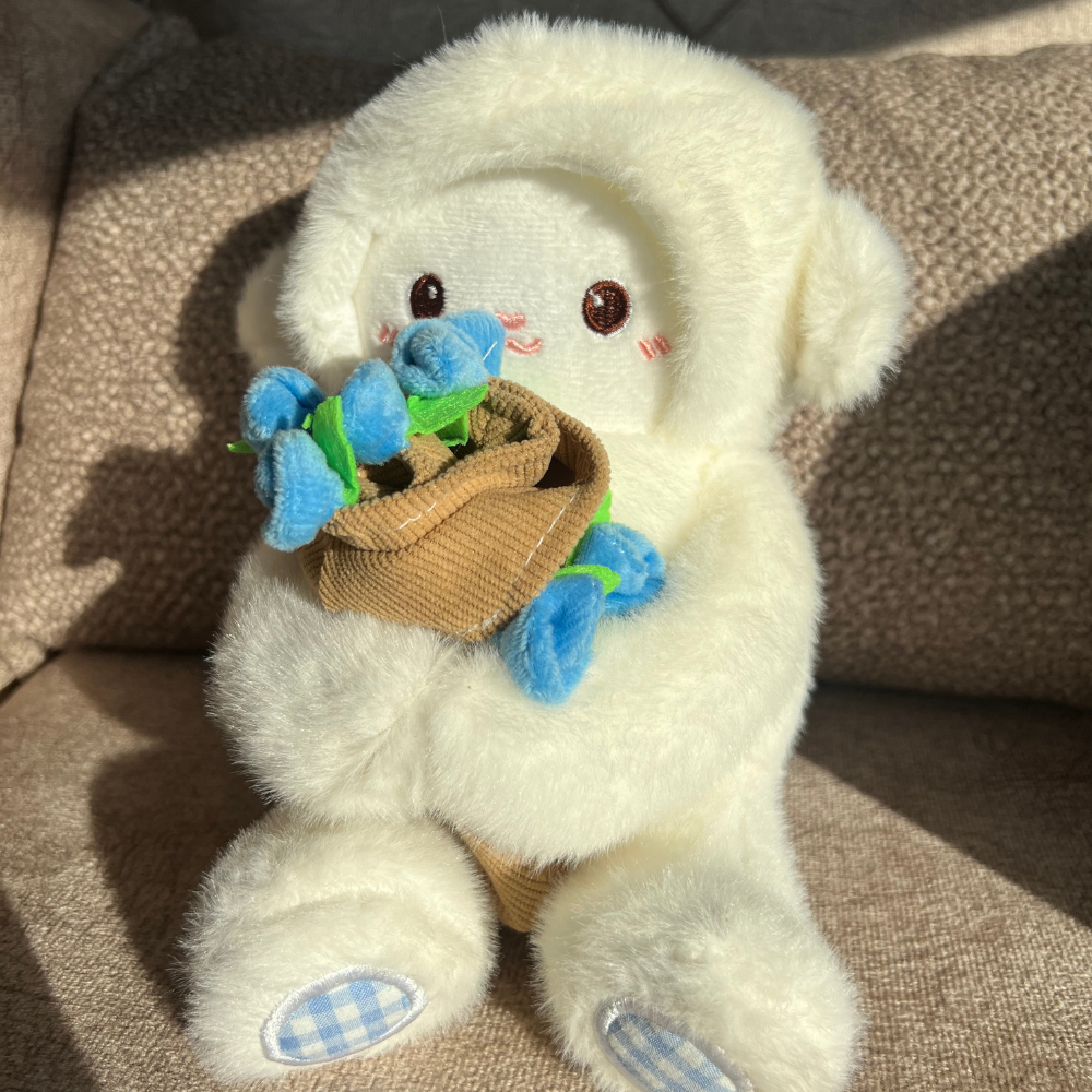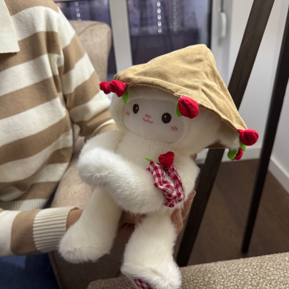 Ovčica Ljubavi je više od obične plišane igračke. Ona je topli simbol pažnje, nežnosti i iskrenih emocija. Sa ružicama u rukama i kapicom ukrašenom cvjetićima, izgleda kao mali čuvar osmijeha. Njeno prisustvo unosi toplinu u svaki prostor, a pogled pun dobrote osvaja svakoga ko je vidi.